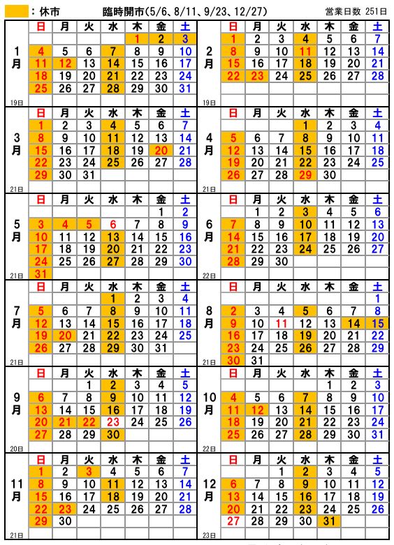 2026年 大館市公設総合地方卸売市場 休開市カレンダー ![]() |